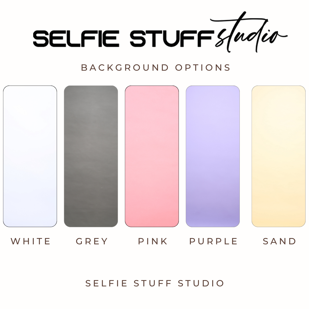 We offer a selection of carefully chosen background colors to match your style and mood. From clean and minimal tones like white and grey, to fun and vibrant shades like pink and purple, each backdrop is designed to enhance your photos effortlessly.